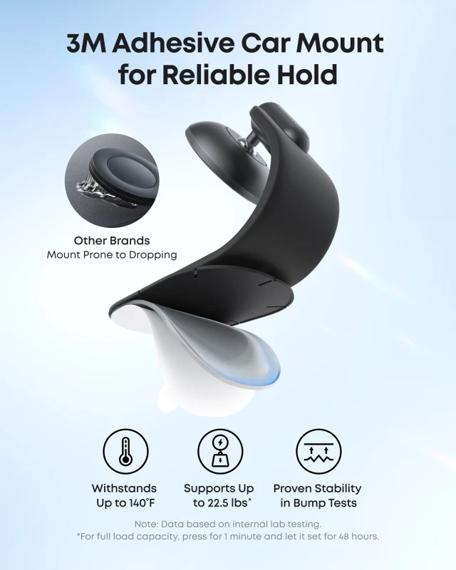 Description The Anker 360 Adjustable Magnetic Car Mount (A9110H11) offers a seamless and secure way to keep your iPhone in place while driving. Crafted from flexible memory alloy, this mount conforms perfectly to curved dashboards and flat surfaces alike, providing a stable and customizable fit. With a powerful 16N magnetic hold (supports up to 22.5 lbs), it ensures your device stays locked in position even on the bumpiest rides. The 360° magnetic pad and 45° adjustable tilt allow for easy angle adjustments for optimal viewing while driving. The 3M heavy-duty adhesive base with hook-and-loop fasteners provides both secure attachment and effortless detachment when not in use. Designed for MagSafe iPhones, it delivers a strong, shake-free magnetic connection — perfect for any dashboard material, including leatherette, plastic, wood, or metal. Key Features: Strong 16N magnetic force keeps phone stable on rough roads 360° magnetic rotation with 45° tilt for flexible viewing Durable memory alloy design conforms to dashboard curves Heavy-duty 3M adhesive mount with hook-and-loop fasteners Compatible with MagSafe iPhones and cases Supports up to 22.5 lb magnetic attachment Stable and reusable design for long-term use Ideal for dashboards made of leatherette, plastic, wood, or metal