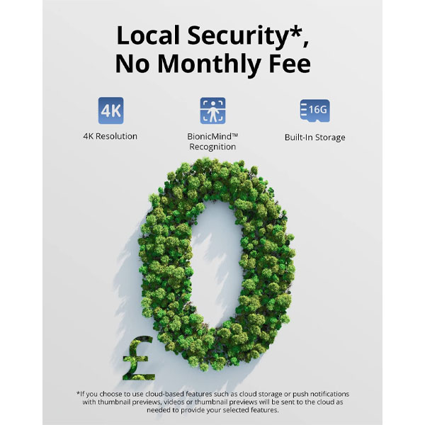S300 eufyCam (eufyCam 3C): 4K Detail with BionicMind Recognition Notice 4K Ultra HD Detail: With 4K UHD, you’ll see the small details of any person that walks onto your property. BionicMind Recognition: BionicMind differentiates family and strangers with facial recognition. Accurate up to 99.9%. Expand Your Local Storage: Store more videos on HomeBase 3 with up to 16TB of expandable storage on a portable hard drive. 180 Days of Security from 1 Charge: Avoid frequent trips to charge the battery and enjoy 180-day battery life from just one charge. Filter False Alarms: No more alerts about family members coming home—you decide which notifications are important. Get Daily Security Briefings: Receive a security report with BionicMind giving you important info ahead of time to take action. Understand in a Glance: Get in-depth knowledge in seconds with categorized events and the power to search faces and objects. Monitor Only the Areas You Want: Set activity zones to finetune your security for peace of mind. Centralized Security: Manage your entire security ecosystem from one central location with HomeBase 3. Two-Way Audio: Communicate with anyone who walks onto your property. Voice Assistant Compatibility: Works with Alexa and the Google Assistant. Not compatible with Apple HomeKit at this time. Built Tough for Any Weather: With IP65 weatherproof protection, eufyCam 3C is guarded against rain and dust storms. Quick Setup: Secure your home in just a few minutes with installation free from complicated wires, and then stay protected 24/7 with the wide 135° wide-angle lens.