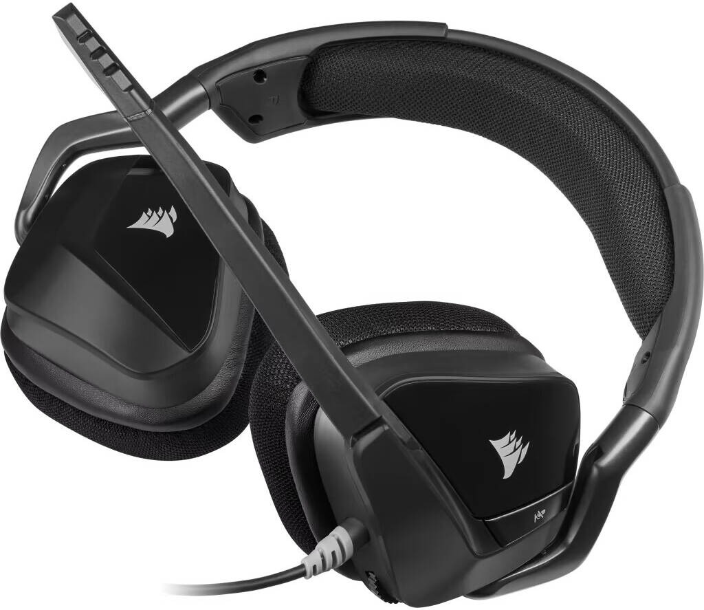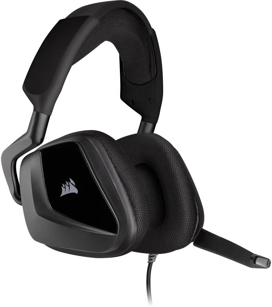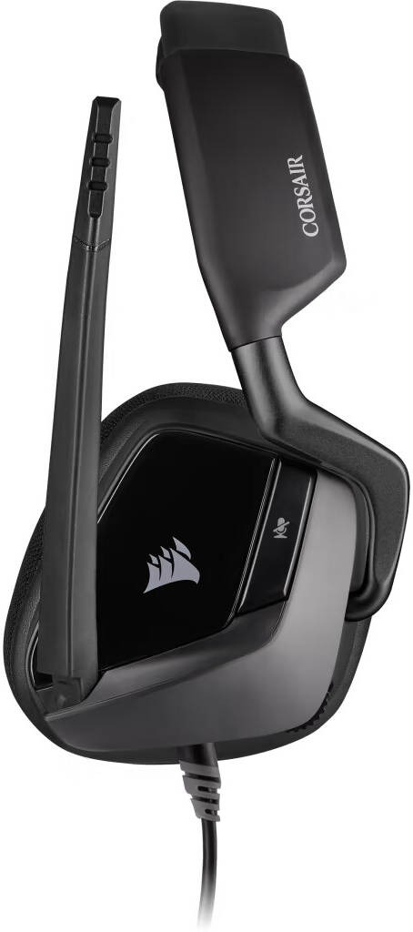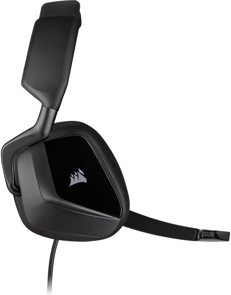 The Corsair VOID ELITE USB is a wired USB headset in gray, designed for PC and Mac. It features 50mm drivers with a frequency response of 20Hz–30kHz, 32k Ohms impedance at 1 kHz, and a sensitivity of 116dB (+/-3dB) for high-quality audio. The headset supports 7.1 surround sound and includes customizable lighting, fully compatible with iCUE software. The omni-directional microphone has a frequency response of 100Hz–10kHz, an impedance of 2.0k Ohms, and a sensitivity of -42dB (+/-3dB). The VOID ELITE USB is wired with a 1.8m cable, weighs 0.39 lbs, and does not include a detachable microphone or battery.