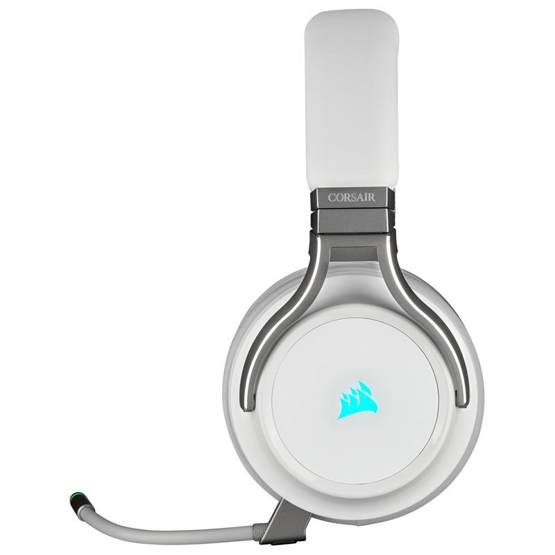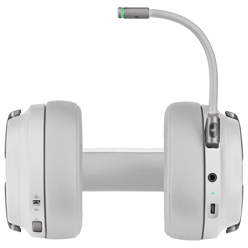 The CORSAIR VIRTUOSO RGB Wireless headset delivers uncompromising sound quality with a matched pair of 50mm high-density neodymium drivers and a frequency range of 20Hz–40,000Hz. Premium memory foam earpads and a lightweight headband provide long-lasting comfort, while machined aluminum construction ensures a durable yet lightweight design. The headset offers three ways to connect and includes a broadcast-grade detachable omni-directional microphone with an RGB LED ring to indicate live or mute status, providing clear, natural vocal communication. Smart sleep and wake functionality automatically powers the headset on or off when you put it on or take it off. Immersive 7.1 surround sound enhances the gaming experience, and dynamic RGB lighting on each ear cup allows extensive color customization. A high-capacity lithium-ion battery supports up to 20 hours of wireless play, with the option to continue listening while charging via USB. The VIRTUOSO RGB Wireless is Discord Certified and fully compatible with CORSAIR iCUE software for pre-tuned audio profiles, custom equalizer settings, immersive surround sound, sidetone control, and RGB synchronization with other CORSAIR peripherals.