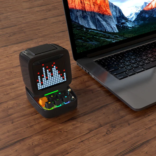 * 15 W DSP-tuned 360°speaker w/enhanced bass * Every Ditoo comes with a fashionable carrying case and package. * 16×16 mobile application pixel art creation & online gallery * Delivers the finest pixel art speaker experience. * Daily tools features: notification, voice memo, daily reminder, weather report, pixel chat, ambient lighting effects and more… * Cloud based application & constantly updated software * Support AUX and SD card audio * Nine stylish games and cool keyboard lighting effects * Output power: 15 W * Charge: 4 hours * Battery Capacity: 5000 mAh * Bluetooth compliant: Bluetooth V5.0 * Playback time : up to 8 hours * Wireless range: Up to 10 meters