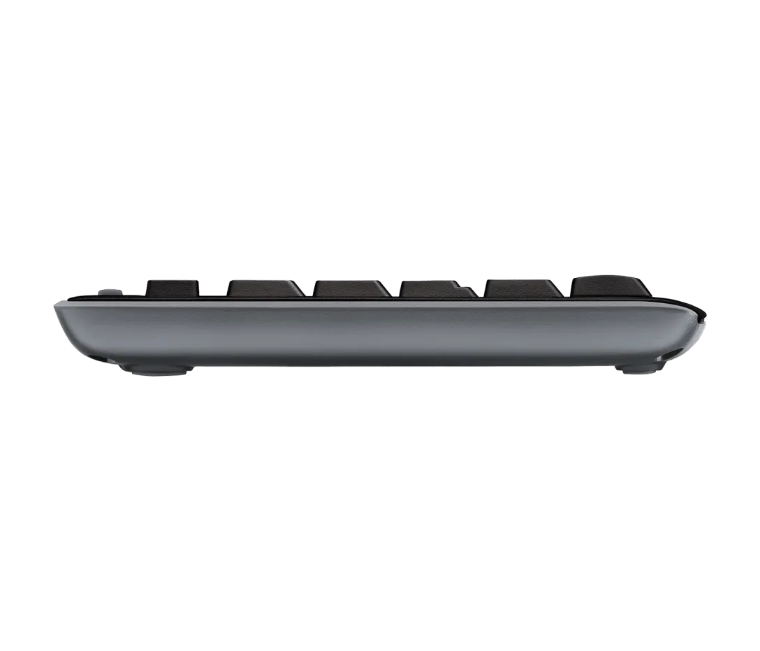 Spill-resistant design | Adjustable keyboard height | 10-Key Number pad | Key type: deep profile | Caps lock indicator light | On/Off power switch | 2 AAA batteries(Alkaline Battery) | Battery life: 3
