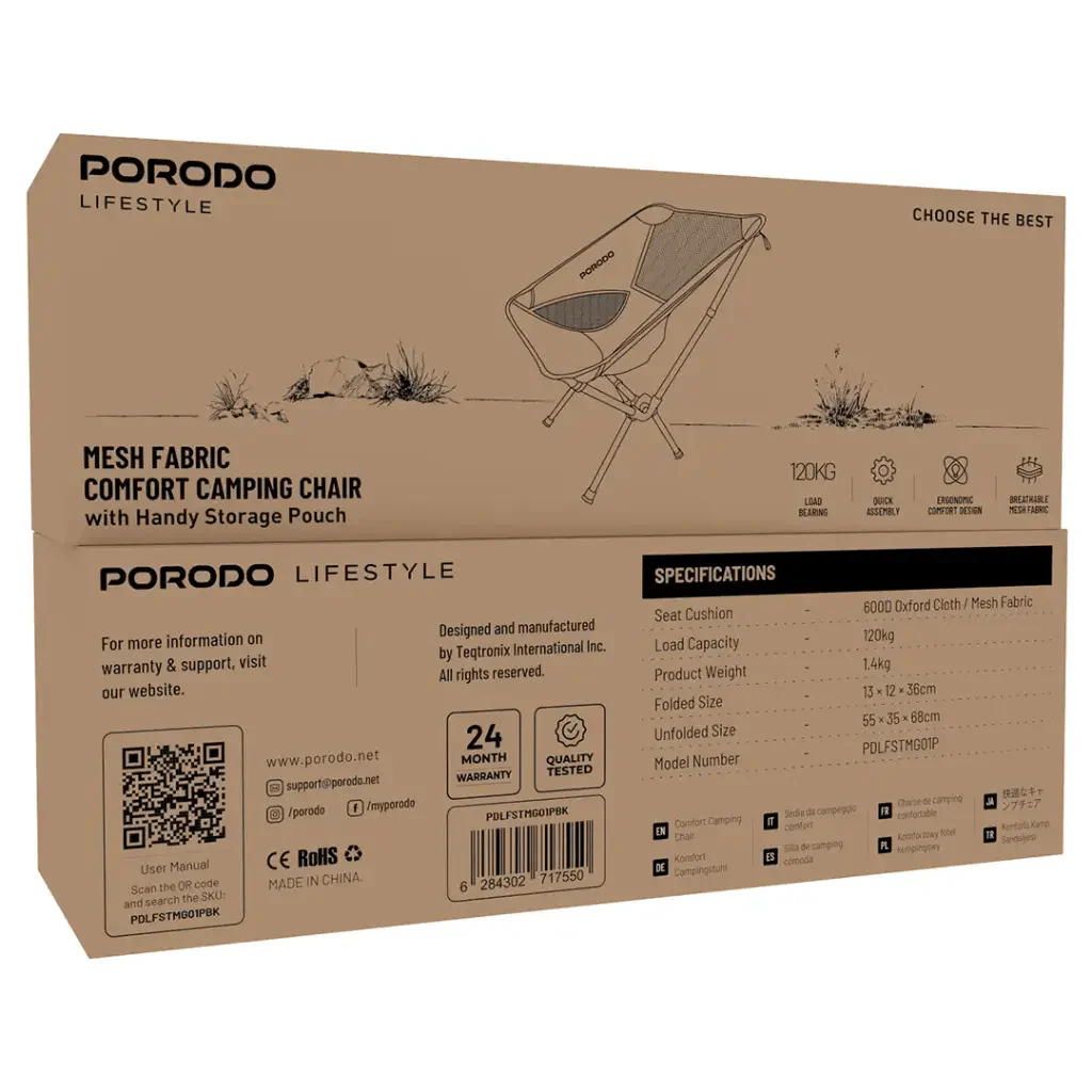 Borodo Comfortable Camping Chair – Mesh Fabric with Side Storage Bag Enjoy comfort while camping and hiking with the Borodo chair, designed to provide comfortable seating anywhere. Made with breathable mesh fabric to keep you cool even in hot weather, the chair features a sturdy frame that withstands everyday outdoor use. Comfortable mesh fabric allows for ventilation and prevents overheating. A sturdy and durable frame makes it suitable for outdoor trips. It folds easily for convenient carrying and storage. A practical side storage pocket is included for your phone, keys, and small items. Lightweight and portable. The Borodo chair is the ideal choice for all lovers of travel, camping, and sitting comfortably outdoors