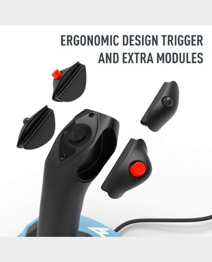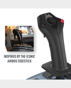 The Thrustmaster Flight Joystick is an ergonomic, 1:1 scale replica of the Airbus sidestick, designed for PC flight simulation enthusiasts. Its configuration can be adjusted for captain, co-pilot, or central solo flight positions, providing a highly realistic flying experience. Equipped with H.E.A.R.T (HallEffect AccuRate Technology) sensors, the joystick delivers precise and reliable control. The built-in throttle on the base includes a thrust reverser function, while rudder control is activated by rotating the sidestick handle, enhanced with a locking system for added realism. This joystick is compatible with the TCA Quadrant Airbus Edition, TCA Quadrant Add-On, TM Flying Clamp, and TFRP Rudder System. It works seamlessly with popular flight simulation games such as DCS, Xplane 11 & 12, Microsoft Flight Simulator 2020, Star Citizen, Elite Dangerous, and War Thunder. Measuring 195 x 195 x 225 mm and weighing 920 g, it combines compact design with durable construction for immersive flight experiences.