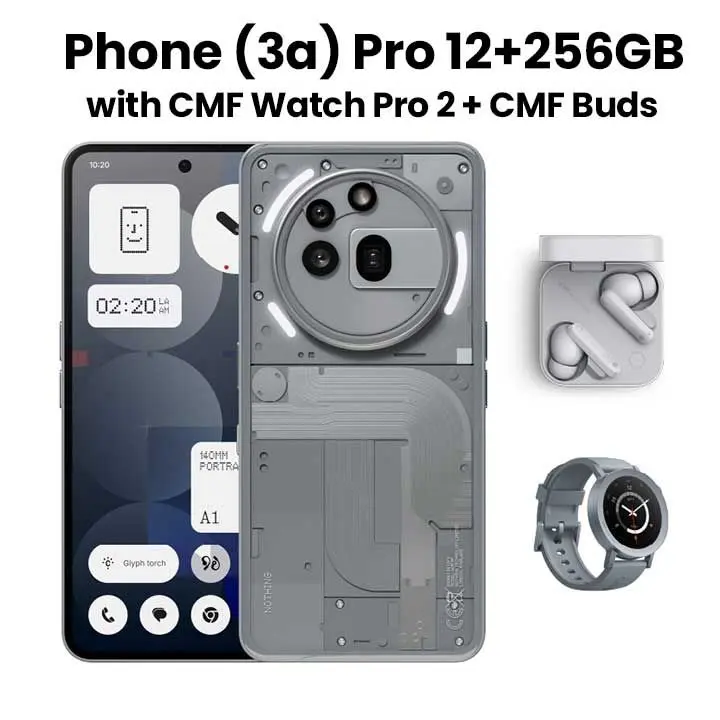 Overview Display: 6.7-inch AMOLED display with a 120Hz refresh rate for smooth visuals. Camera: Dual 64MP main and 12MP ultra-wide camera system for stunning photos. Processor: Powered by Qualcomm Snapdragon 8 Gen 1 for fast and efficient performance. Battery: 5000mAh battery with fast charging support for all-day use. Design: Sleek and modern design with a matte finish for a premium feel. Storage: Available with 128GB or 256GB storage options. Storage: Available with 128GB or 256GB storage options. Operating System: Runs on Nothing OS, offering a clean and intuitive interface. Connectivity: 5G support for fast and reliable mobile data speeds. Audio: Stereo speakers for an immersive sound experience. Security: In-display fingerprint sensor for fast and secure unlocking. Specifications Overview The Nothing Phone (3A) Pro in Grey combines sleek design with powerful performance. It features a stunning 6.7-inch AMOLED display with a 120Hz refresh rate for smooth visuals and immersive experiences. The dual-camera system with a 64MP main camera and a 12MP ultra-wide camera ensures exceptional photography capabilities. Powered by the Qualcomm Snapdragon 8 Gen 1 chipset, it delivers lightning-fast performance. With a 5000mAh battery, you can enjoy all-day usage with fast charging support. The phone is available with either 128GB or 256GB of storage and runs Nothing OS for a clean, user-friendly interface. Equipped with 5G support, stereo speakers, and an in-display fingerprint sensor, the Nothing Phone (3A) Pro offers a premium experience at an affordable price.